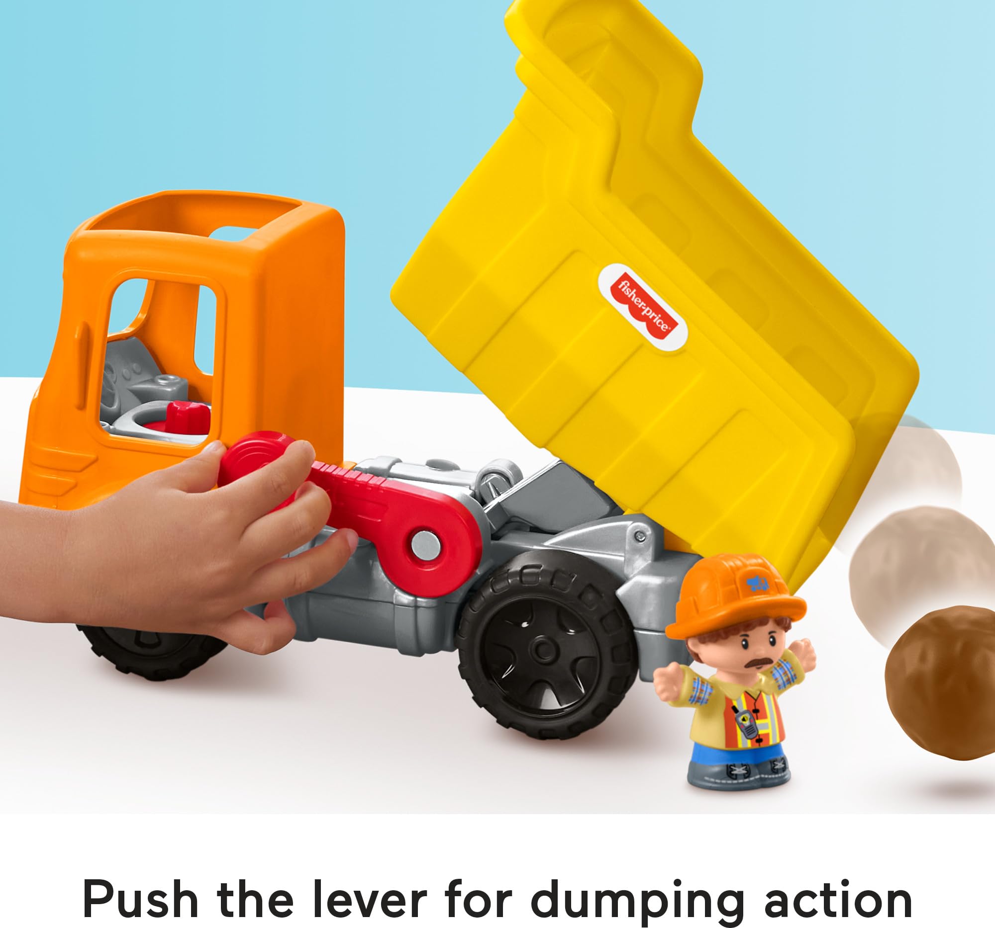 Fisher-Price Little People Toddler Construction Toy Work Together Dump Truck with Music & Accessories for Pretend Play Kids Ages 1+ Years