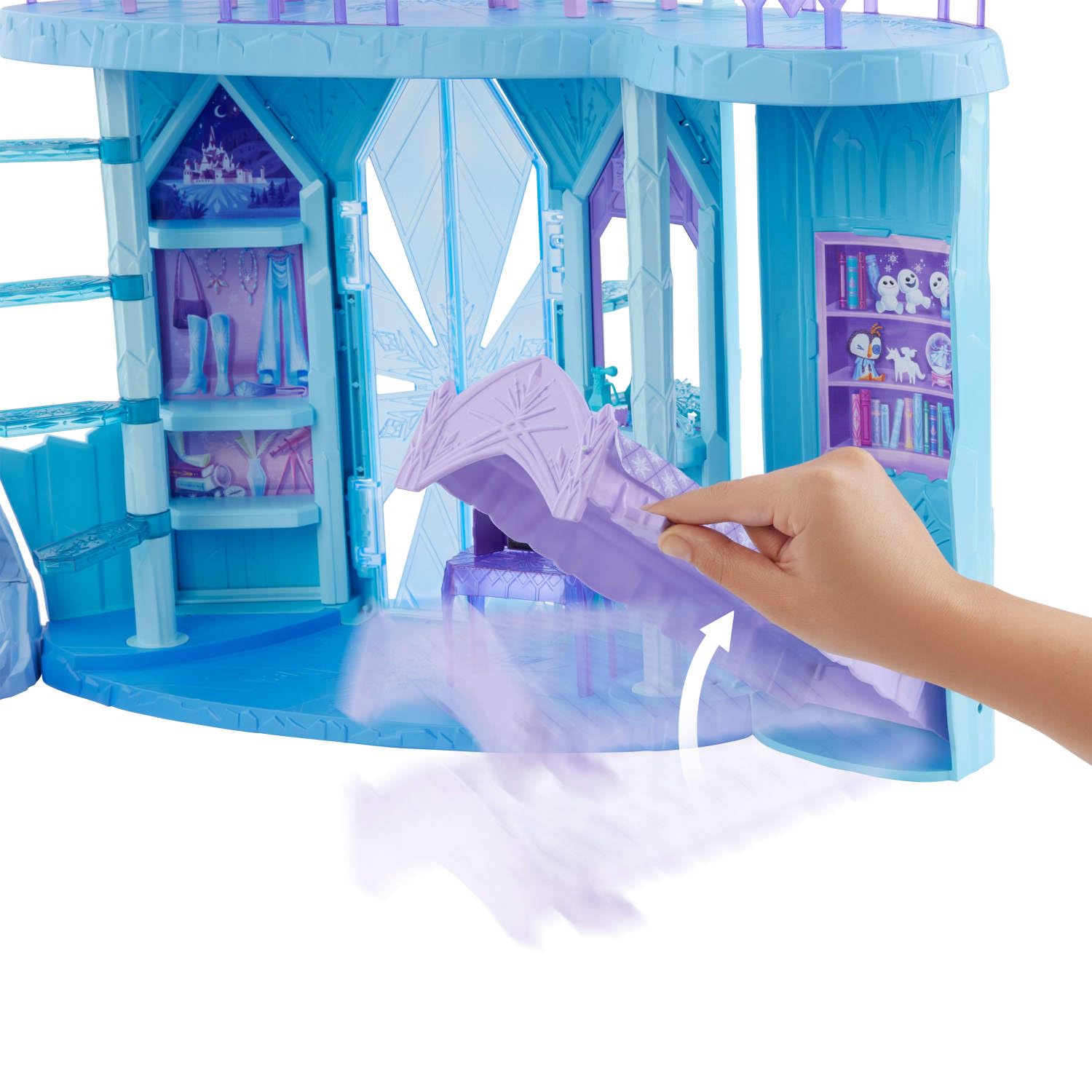 - Elsa's Frozen Ice Palace is almost three feet tall and has five fun play areas, including a bedroom, dining area and a balcony for dreaming of adventure!