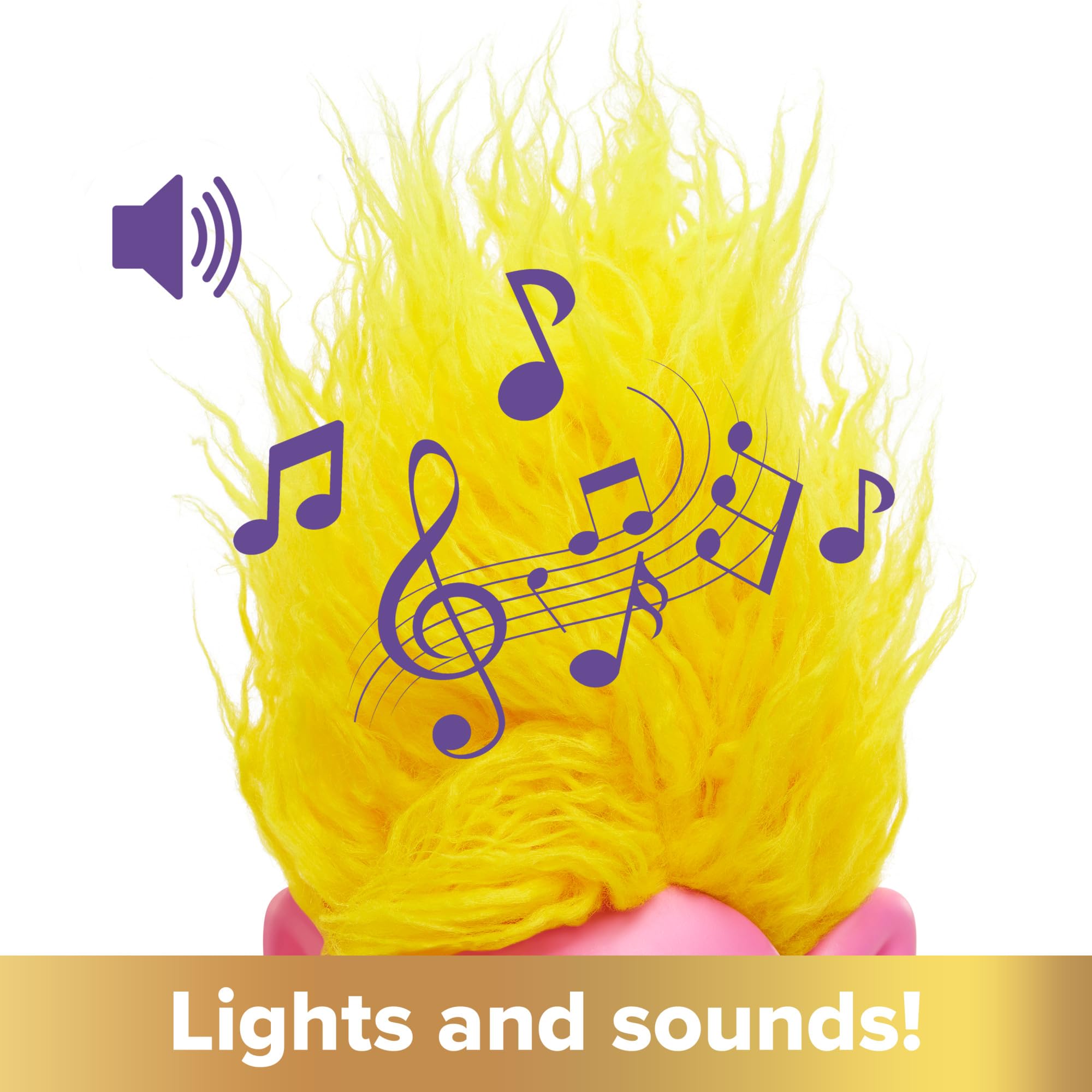 - Each doll features extra-long hair that lights up and plays music and sounds from the movie DreamWorksTrolls Band Together.
