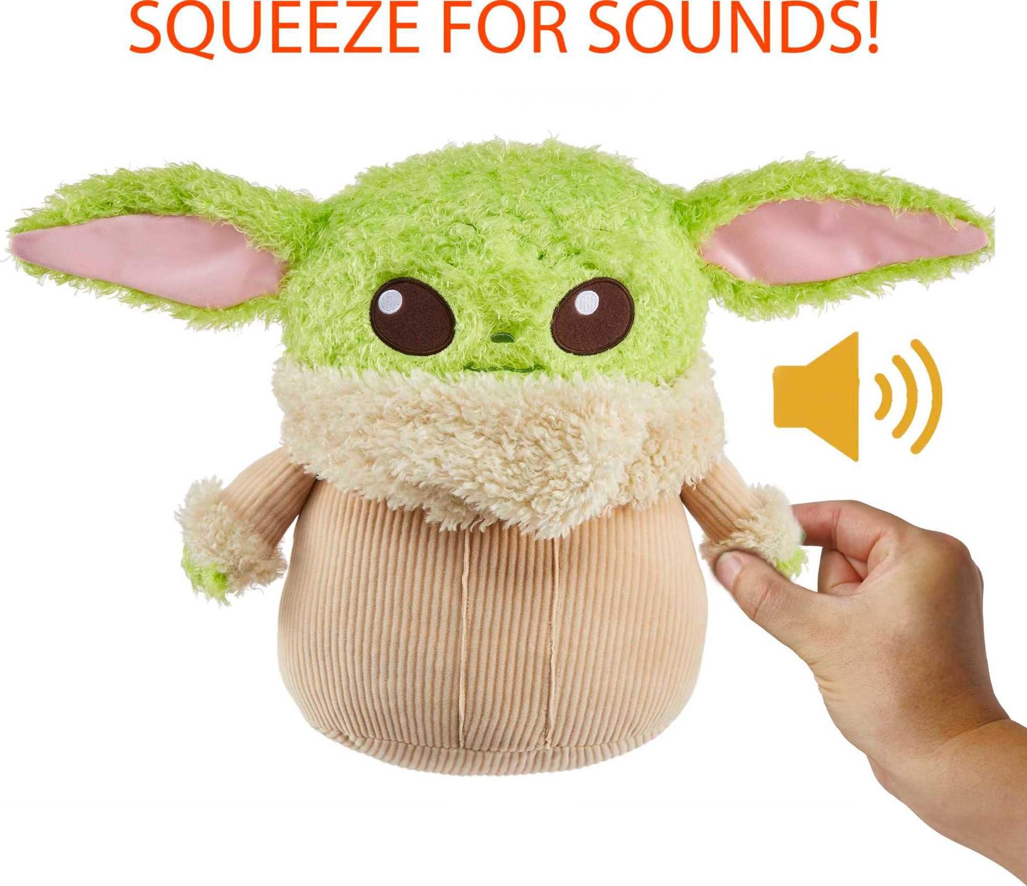 Mattel Star Wars Grogu Plush 12-inch Toy Figure, Soft 'n Fuzzy Character Doll with Sounds, Press Hands to Activate